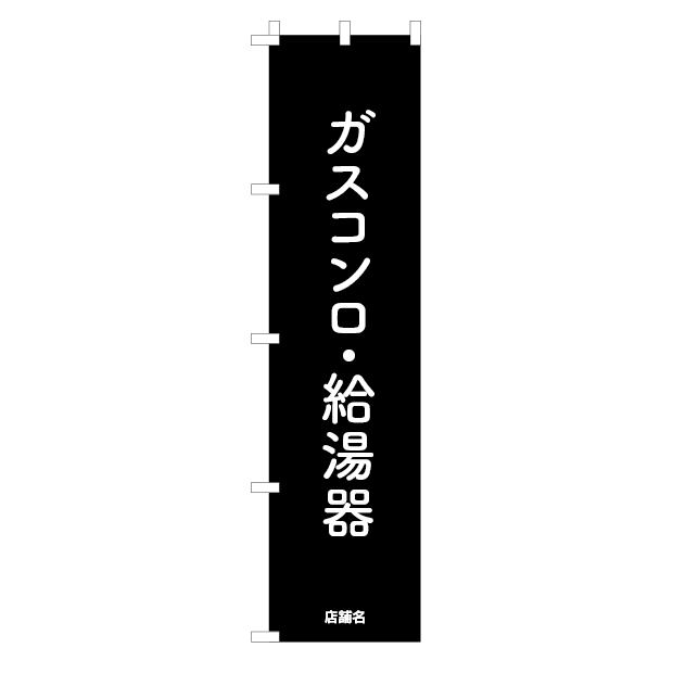 SZBT-NBLP-004[貴店・御社名入り]プロパンガス店をシックに飾る、ブラックのぼり「ガスコンロ・給湯器」(スリム型)