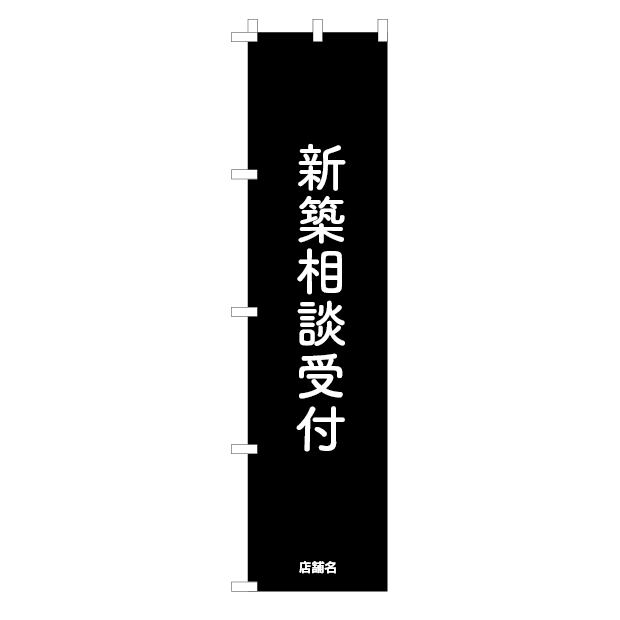 SZBT-NBJT-024[貴店・御社名入り]工務店をシックに飾る、ブラックのぼり「新築相談受付」(スリム型)